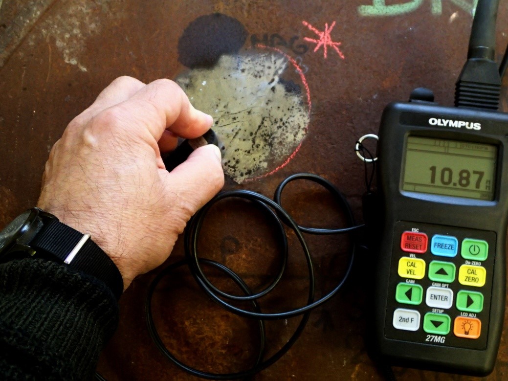 Měření tloušťky stěny potrubí, tlakových nádob, ocelových konstrukcí apod. je poměrně rozšířeným požadavkem pro NDT pracovníky. Běžně se tloušťky měří ultrazvukovými tloušťkoměry, které měří čas, za který se vrátí vyslaný ultrazvukový impuls odražený od protilehlého povrchu měřeného předmětu. Měření můžou zkreslit povrchové nerovnosti, zbytky koroze, barva, atd. Častou chybou je použití dvojité sondy s velkým průměrem měniče pro malé tloušťky, kdy dobu průchodu zkresluje takzvaná V-dráha.